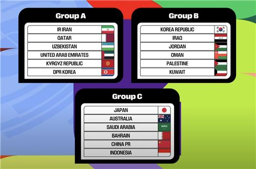 일본(17위)과 호주(23위), 사우디아라비아(56위), 바레인(81위), 중국(88위), 인도네시아(134위)가 C조에 포함됐다.