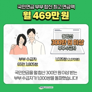 부부 합산으로 월 300만원 이상을 받는 국민연금 부부 수급자가 1천쌍을 돌파했다.